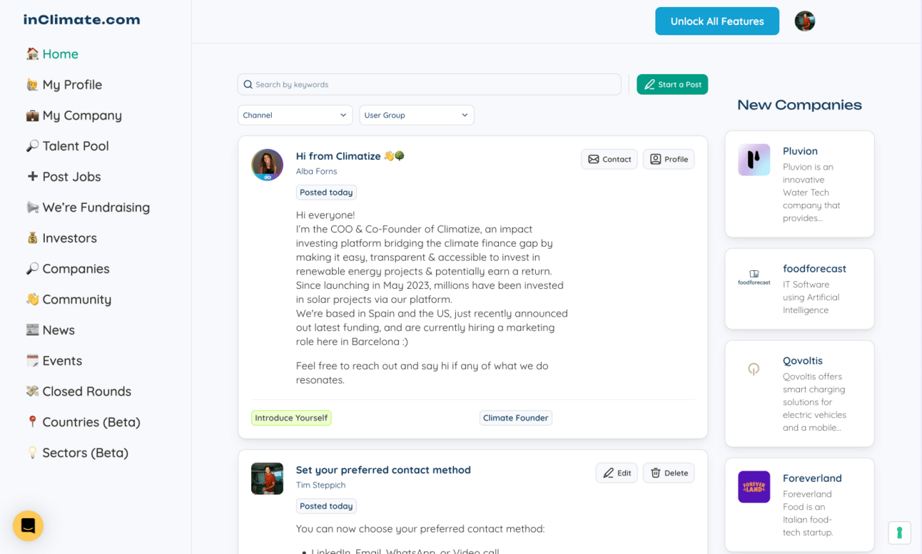 If LinkedIn and Crunchbase had a child, and that child only cared about the climate sector - that is what we’re building. (Still working on a better comparison…)