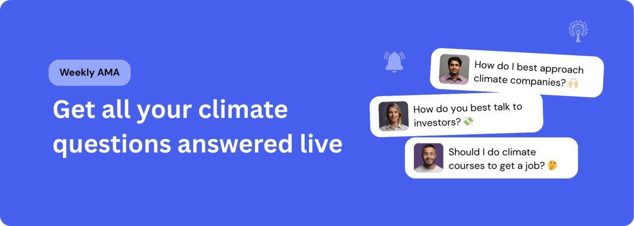 Ask anything about climate-tech, jobs, the community, or whatever’s on your mind. Members can sign up via our community space.